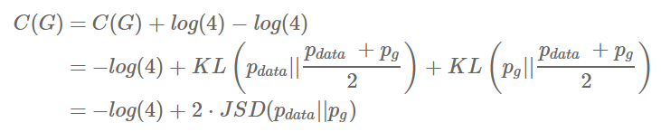 Jensen-Shannon divergence는 마치 KL divergence와 동일하게 두 분포 사이의 거리를 나타내는 일종의 장치입니다. 항상 양수라는 것이 증명되어있기 때문에 최솟값을 구하는 문제에서 두 분포가 같아야함을 보이는데 자주 사용됩니다.